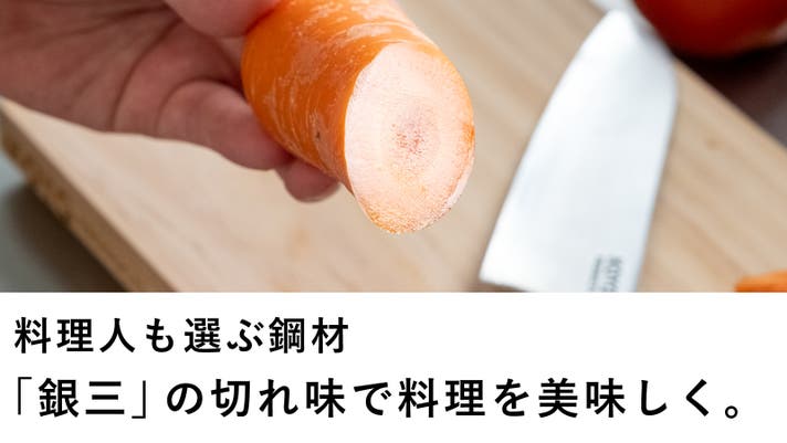 - 料理人も選ぶ鋼材「銀三」による、圧倒的な切れ味を実現。いつもの料理をより美味しく。