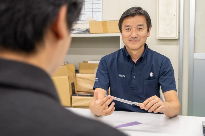 日々店頭に立つ店主である三浦さんと、刃物に造詣が深い濱田さん。お二人の意見も取り入れながら開発を進めました。
