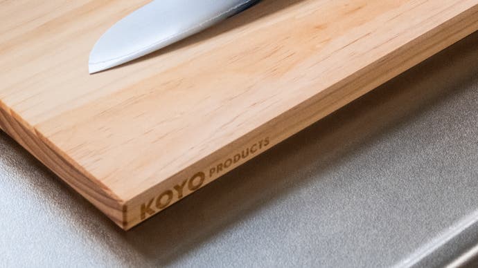 まな板としては比較的珍しい、パイン材を使用したまな板です。パイン材は非常に軽量で扱いやすく、大柄な木目もお楽しみいただける木材です。