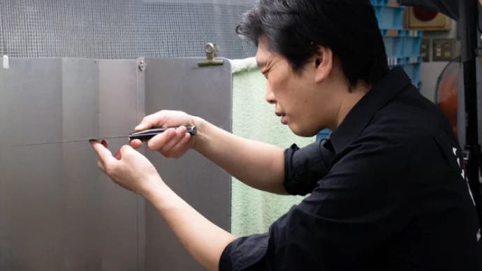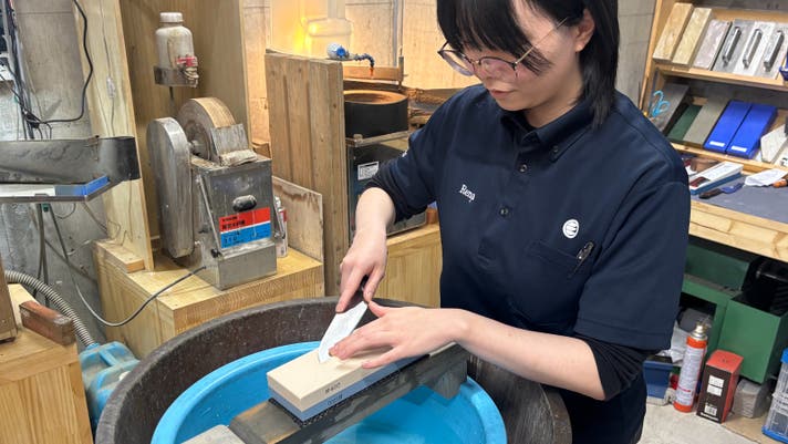 刃物に命を吹き込む、最後の仕上げとなる「研ぎ」。何十人といる職人の中でも、片手で数えるほどの熟練の職人にしか許されない工程です。