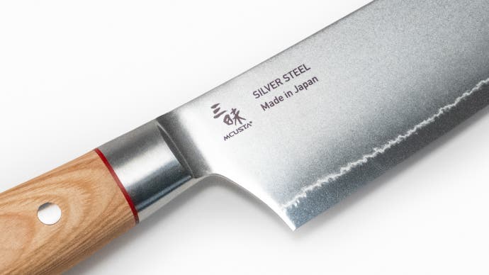 切れ味を保つには、鋼材の硬さが必要です。しかしたとえば高級包丁に用いられる「VG10」という鋼材は非常に硬く、家庭で研ぐのは難しいという側面があるのです。その点「銀三」は砥石がスッと食いつき、切れ味の復活を確かに実感できる硬さ。