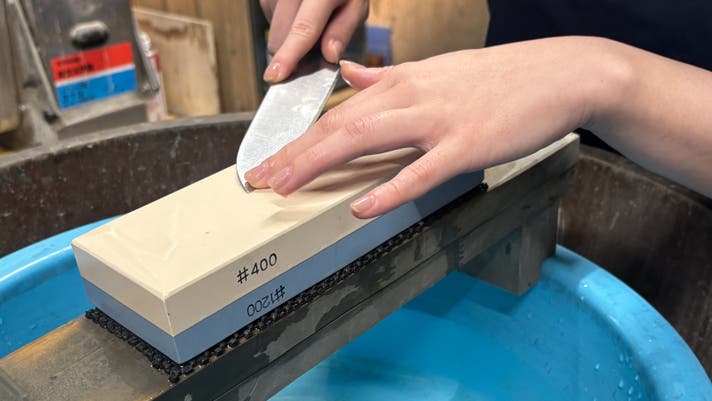 少し切れ味が落ちてきたな、と感じたら1200番でサッと研ぐ。もし刃の欠けが生じたり、しばらくお手入れを忘れてしまっても、荒砥の400番でしっかり研ぎ直せる。