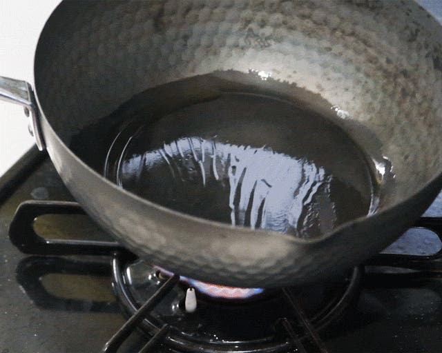 1.なべを大さじ3の油で熱しながら、底面全体に油がいきわたるようになじませる。