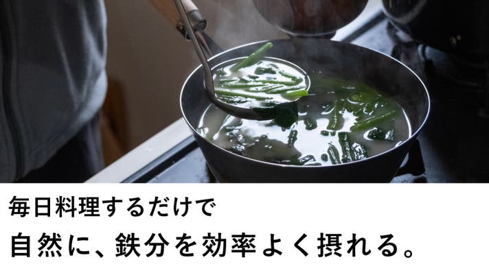 鉄のフライパンは、料理するだけでカンタンに鉄分が摂取できるのも大きなメリット。