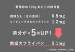 野菜炒めを調理する試験によると、無垢のフライパンで調理したものはコーティングされたフライパンよりも、鉄分量がおよそ5倍にアップ。
