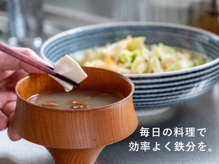 お味噌汁のような毎日の料理に使用すると、さっと手軽に、自然に効率よく鉄分を摂取できるのです。