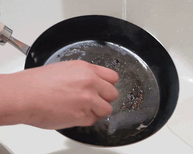 3.水とたわしで良く洗い、コンロの火で良く乾かす。