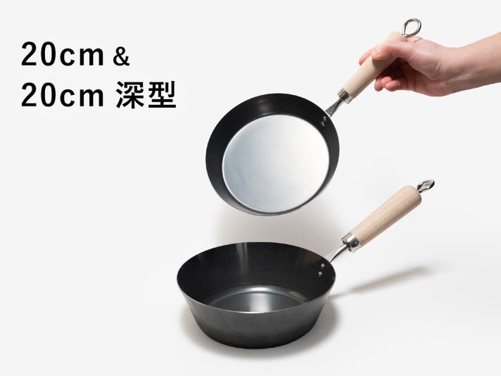 今回の無垢フライパンは、20cmの浅型、深型をご用意しました。