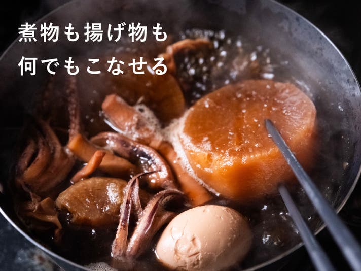 - 熱がしっかりまわる厚みと、程よい軽さを実現。末永く使え、鉄分も効率的に摂れる。