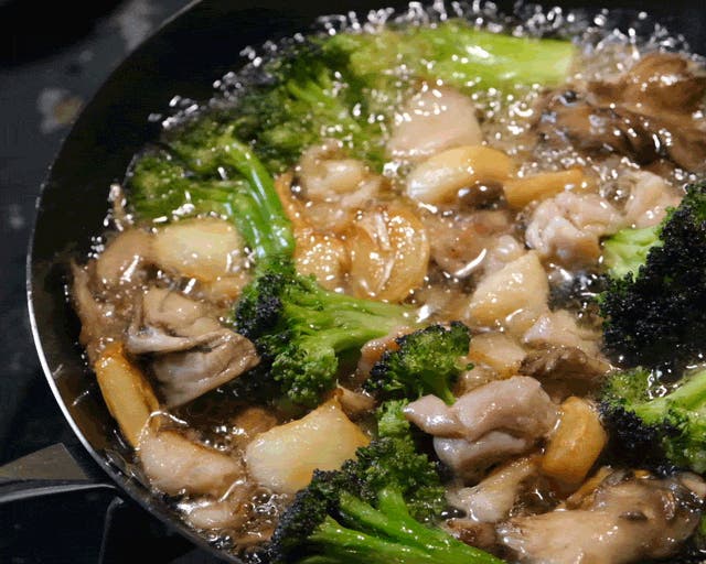 1.なべを大さじ3の油で熱しながら、底面全体に油がいきわたるようになじませる。