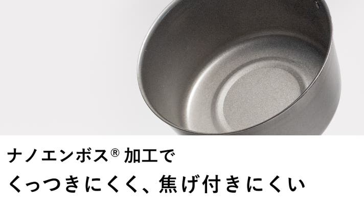- ナノエンボス®加工により、スルンとくっつきにくく、焦げ付きにくい