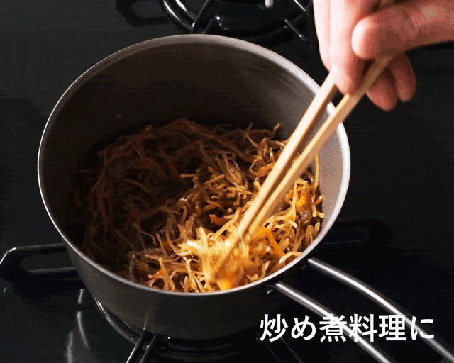 料理をするだけで鉄分の摂取が期待できるという"鉄"の良さを活かし、味噌汁などのスープ、きんぴらなどの炒め煮する副菜にも。