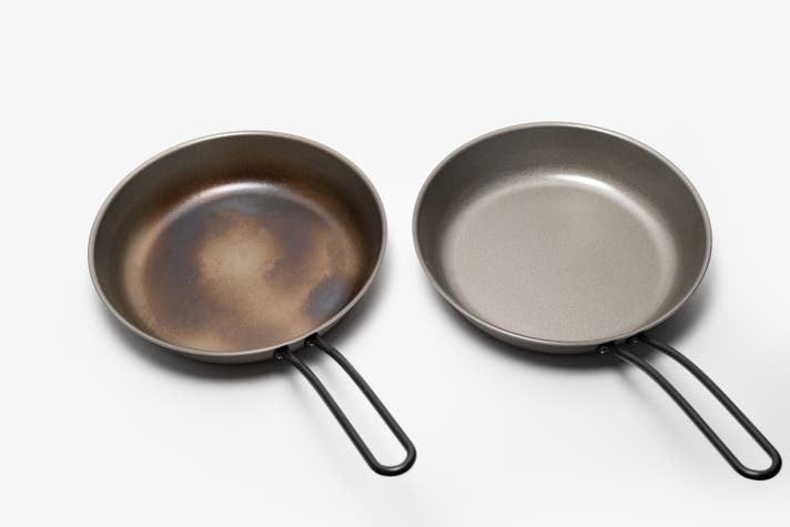 最初はシルバーの本体ですが使う程に油がなじみ、より一層くっつきにくく変化していきます。黒みを帯びた風貌に変化していくのも「育つ」実感を得られてまた一興。