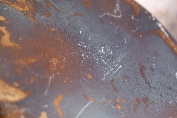 使い始めは、一時的に表面を覆っている塗装が剥がれる跡が目立つ場合があります。使用するうちに目立たなくなりますのでご安心ください。
