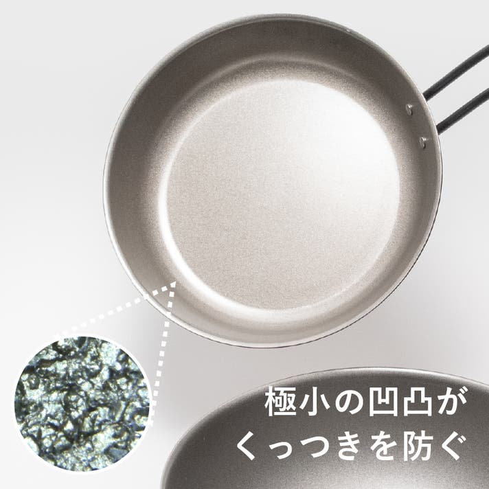 その名の通り肉眼では確認できない極小レベルの細かな凹凸をつけることで、するりとした表面でありながら油なじみが良く、焦げつきにくいというメリットを実現しています。