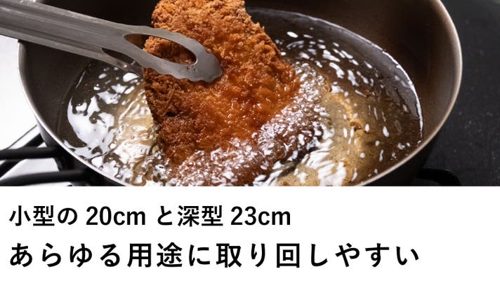 - 超軽量を実現。高火力もがっつり使えるタフ仕様、使い勝手の良い20cmと深型23cm