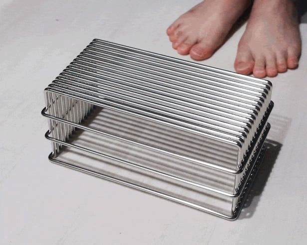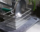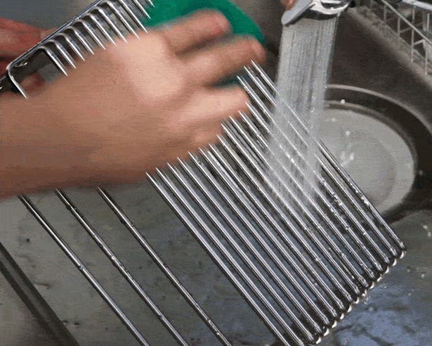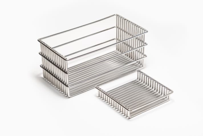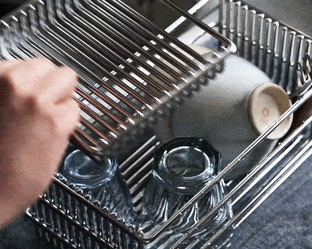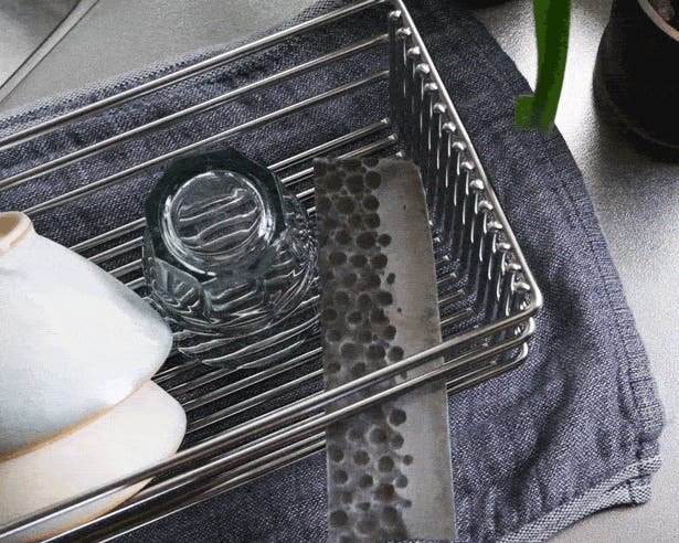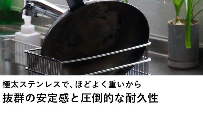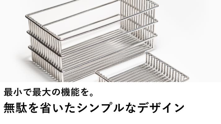 極太ステンレスワイヤーを使用することにより、安定感と耐久性を。スキマに「ひっかける」ことで、食器を置きやすく。徹底して無駄を省いたシンプルなデザインで、清潔に。