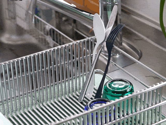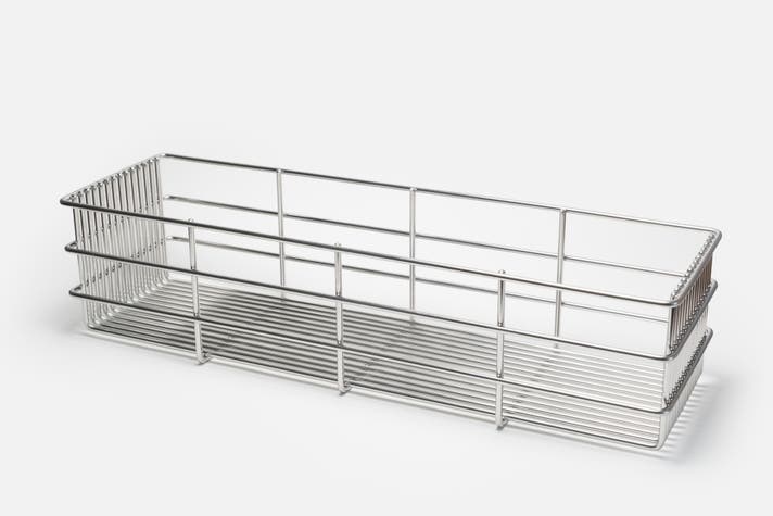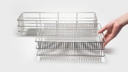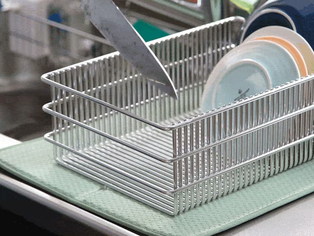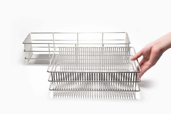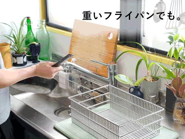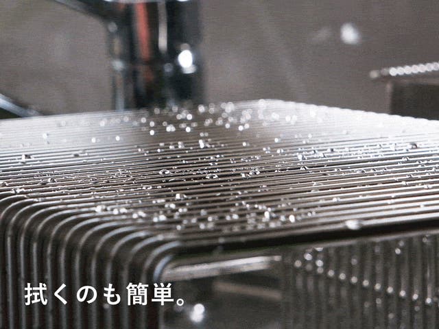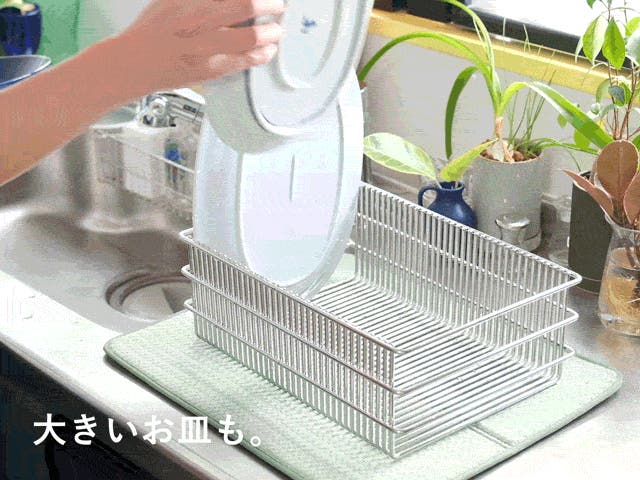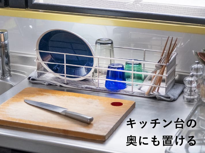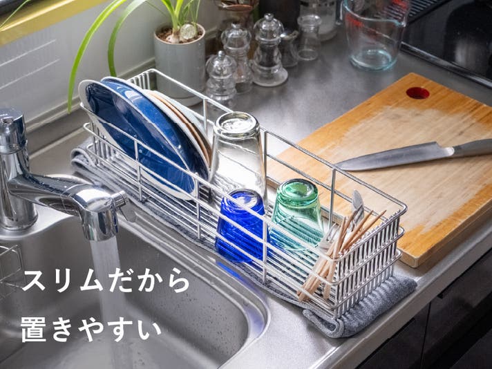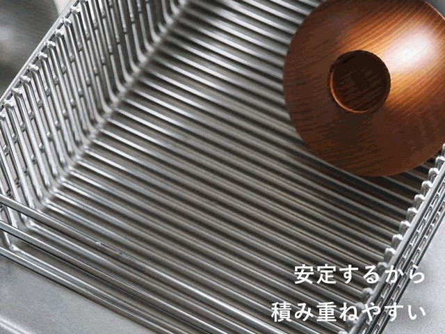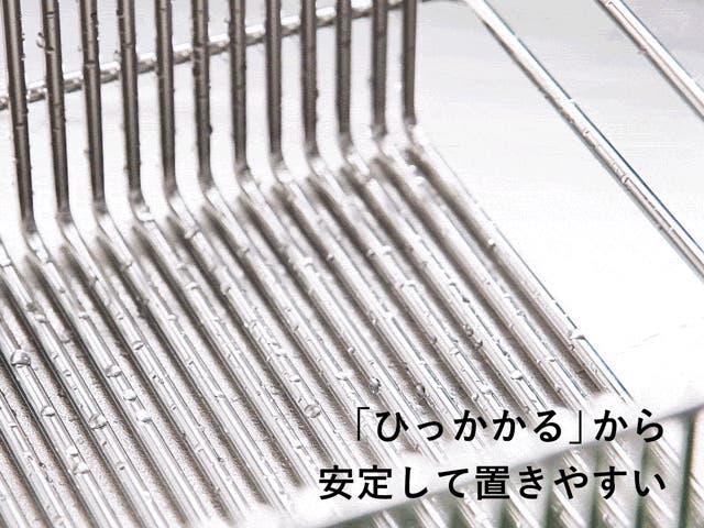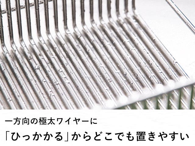極太ステンレス線材を使用することにより、抜群の安定感と耐久性を実現。スキマに「ひっかける」ことで、どこにでも食器を置きやすい。徹底して無駄を省いたシンプルなデザインで洗うのも簡単、いつも清潔に。
