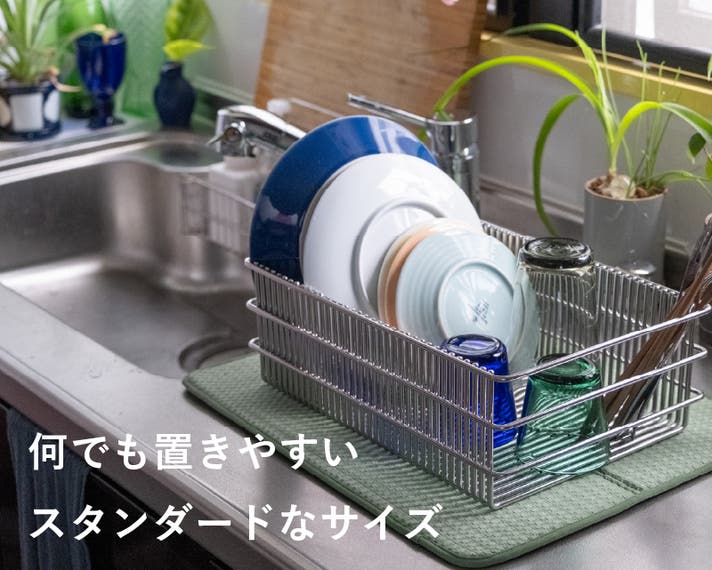 ワイドサイズはあらゆるお皿や調理器具を置きやすい、水切りラックとしてはスタンダードなサイズ感です。