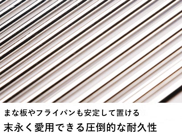 - 重いフライパンでもしっかり置ける、抜群の安定感。 永く愛用できる圧倒的な耐久性