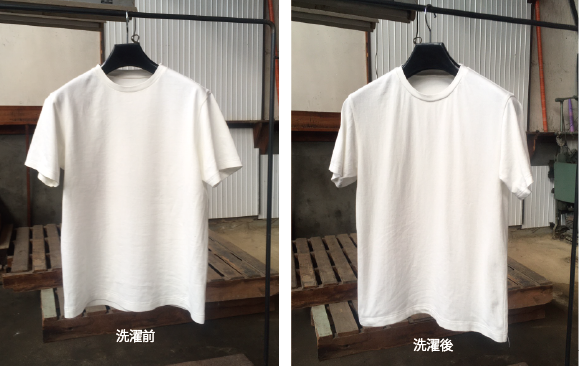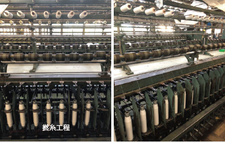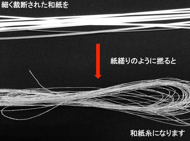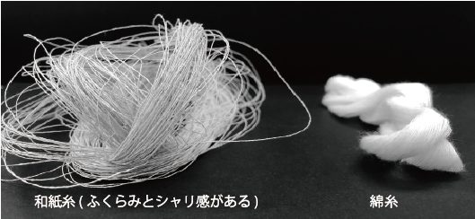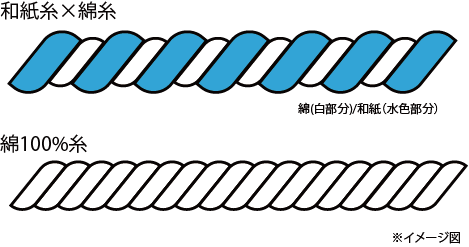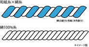 和紙糸と綿糸、この2本の糸を1本にすることで、着用感や肌触り、更にシワ感も大きく変わりました。