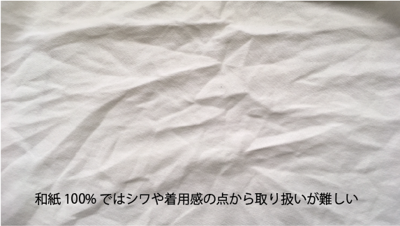 私たちは和紙特有のシャリ感や清涼感を残しつつ、シワやゴワゴワ感といったマイナス要素を解消するにはどうしたら良いかを研究し、