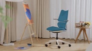 さらに、家庭内で多様な用途に応える工夫も施されています。例えば、独自のショートアームレストは、PC作業時の座り方では手や腕をサポートし、机に肘をついた学習姿勢では椅⼦が机に近づけられない妨げにならない設計となっています。また、正座、逆向き、リクライニングなど、さまざまな座り方が可能な柔軟な構造により、くつろげるシーンが広がり、家族の暮らしに楽しさをプラスします。