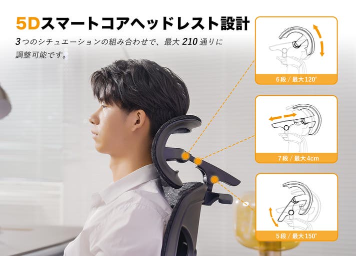 - 細やかな調整が可能な5Dスマートヘッドレストと、可動式ランバーサポートで、究極の座り心地を実現