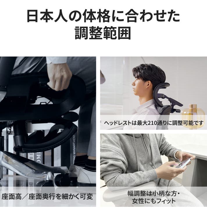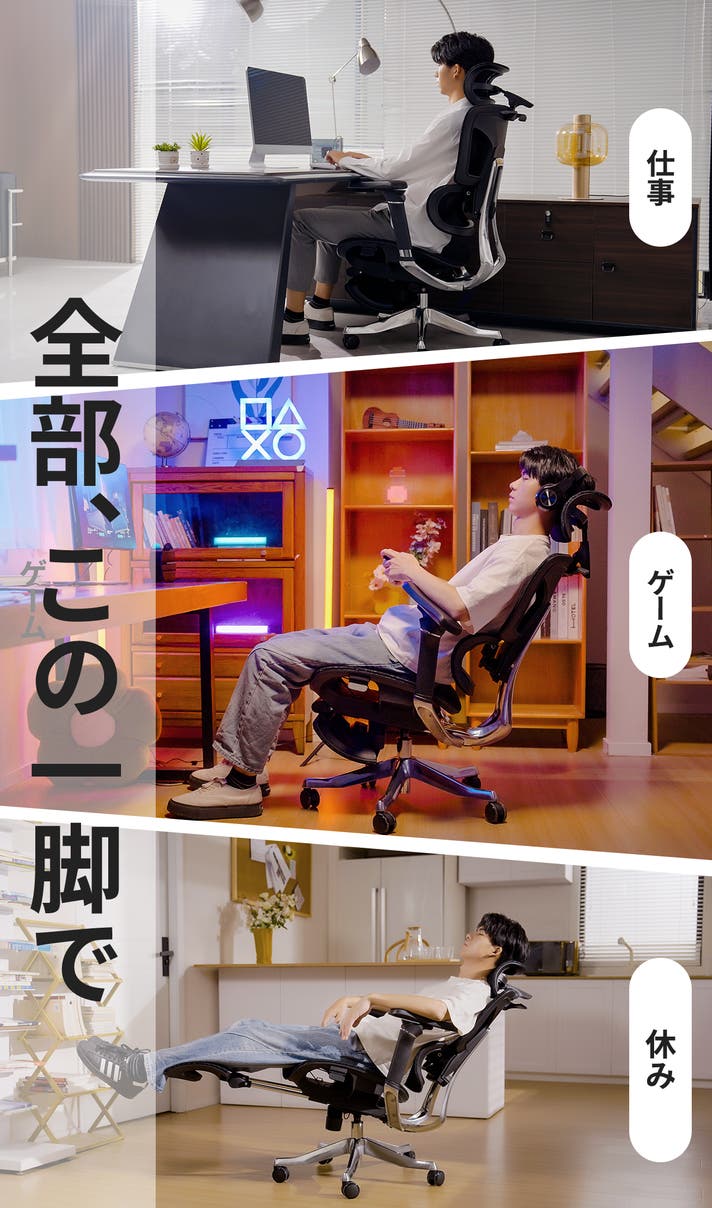 - チエア選びで、もう迷わない。長時間の座りでも首・肩・腰をしっかりサポート