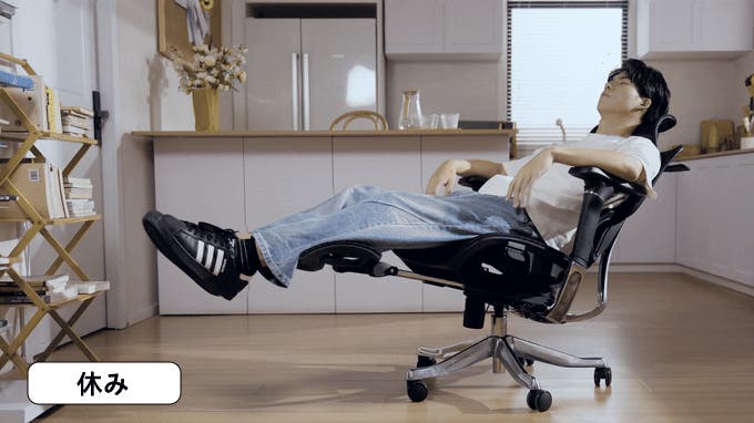 最大150°のリクライニングと合わせて、仕事の合間に気軽に仮眠がとれます。