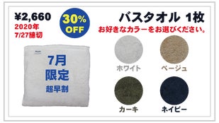 2020年7月27日18:00頃終了【超早割30%OFF】バスタオル 1枚