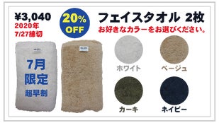 2020年7月27日18:00頃終了【超早割20%OFF】フェイスタオル 2枚