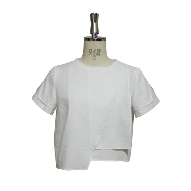 小柄な方でもそうでない方でもTシャツ感覚で着て頂けるように身頃は折り紙のようなシルエットを重ねゆったり着て頂けるように仕上げております。袖部分も生地を2枚重ねおり、折り返し可能となっております。バックの首元も折り返し可能です。