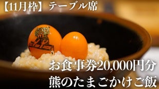 【11月枠】テーブル席先行予約4名様まで+お食事券2万円分+熊のたまごかけご飯