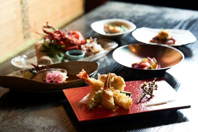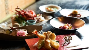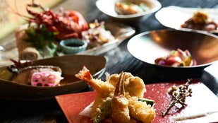 獺祭含む各種アルコール飲み放題付き 伊勢海老、和牛、雲丹含むフルコース