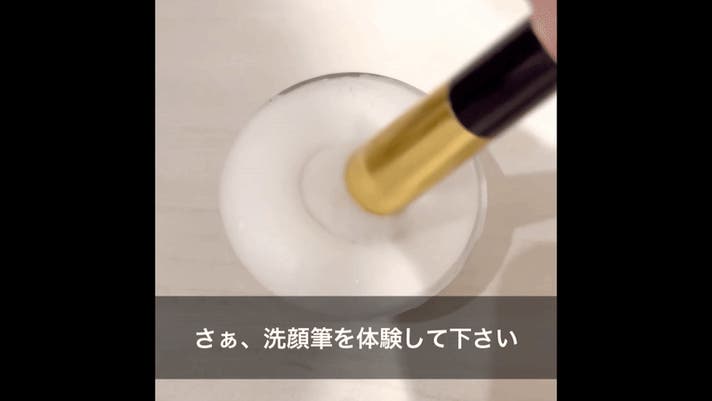 ◎洗顔料は少量で十分:熊野筆の48mmの毛は泡立ちが良いため、いつもの半量程度で濃密な泡が作れます。