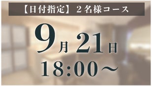 ■【9月21日18:00~】2名様コース(3枠)/4名様コース(3枠)