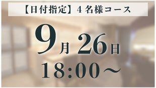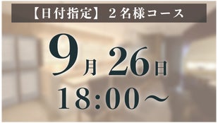 ■【9月26日18:00~】2名様コース(3枠)/4名様コース(3枠)