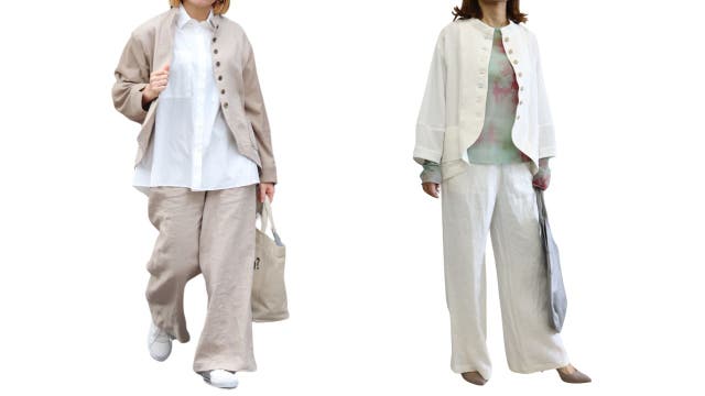 (左モデル159㌢フリー ベージュ着用)(右モデル154㌢フリー ホワイト着用)