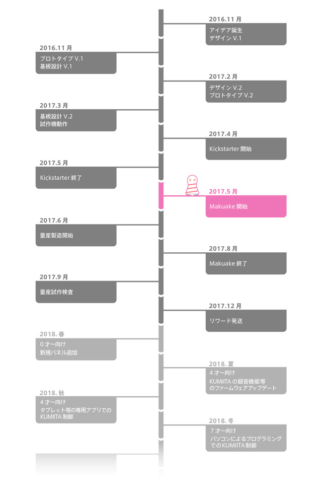クミータは、今回お届けする基本セットで0才から親子でプログラミングに親しむ環境を作れます。また、基本セットパネルの組み合わせで成長に合わせたプログラミング教育に充分に楽しめますが、将来も、より多彩な学びができるようパネルの追加や本体のバージョンアップを行っていく計画があります。
