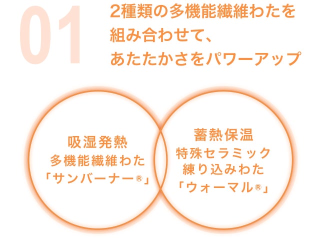 2種類の多機能繊維わたを組み合わせ、暖かさをパワーアップ