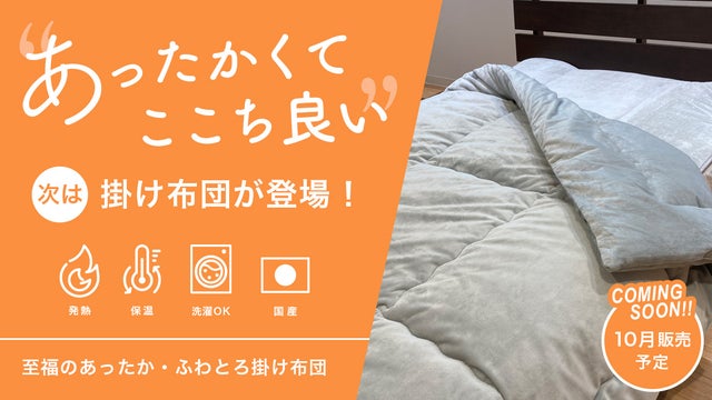 敷パッドに続いて、「至福のあったかふんわり掛け布団」がmakuakeにて10月販売予定です。