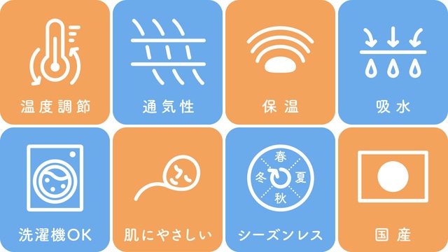 - 4重ガーゼに温度調節素材を組み合わせた5層構造で、より快適な温度に近づけます。