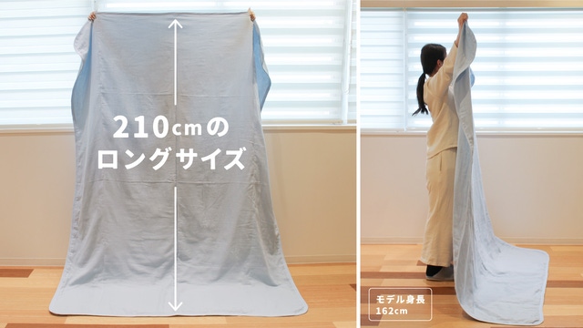 通常サイズよりも 20cmほど大きいロングサイズ で、つま先から頭まで全身を覆うことができます。