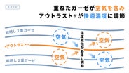 ガーゼを2枚重ねた2重織ガーゼを2組と、その間に温度調節機能素材「アウトラスト®」シートを合わせた