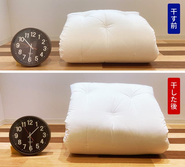 本体は天日干しにより湿気が発散されボリュームが復元します。