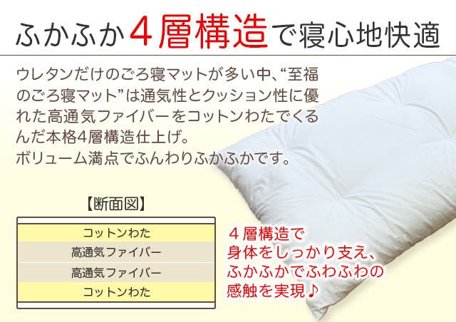 中わた・中芯・構造・組み合わせをこだわり抜いた至福のごろ寝マットです。