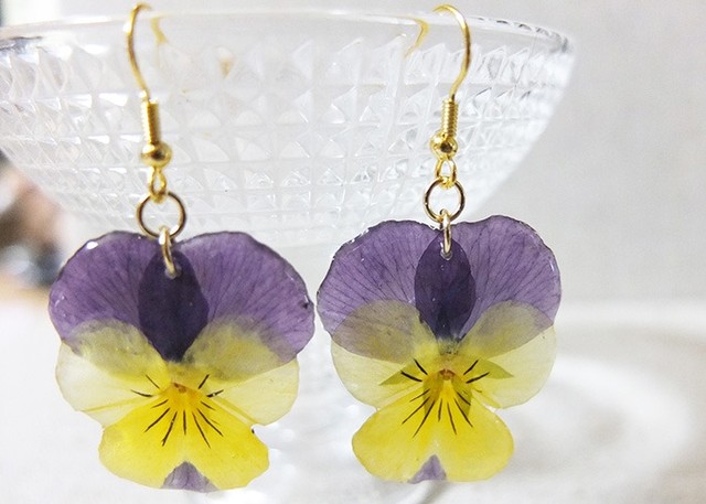 本物のお花を樹脂でコーティングしたピアスを1組お送りいたします。