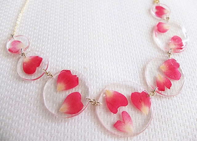 本物のお花を樹脂でコーティングしたネックレスを1つお送りいたします。