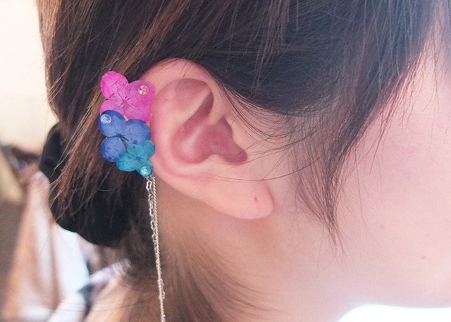 本物のお花を樹脂でコーティングしたイヤーカフを1組お送りいたします。